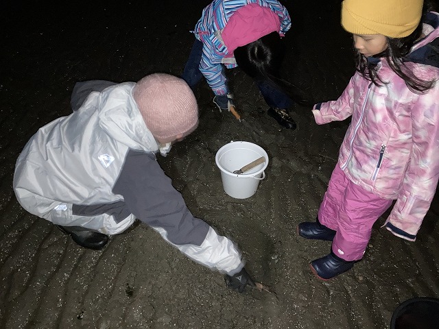 冬の潮干狩りには、春の昼間とはまた違った魅力があります。