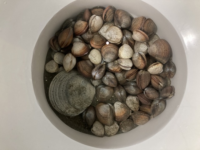 シオフキガイは砂が中々抜けないなので敬遠されがちですが、しっかりと砂抜きをしてやると、甘みがあって美味しい貝です。
